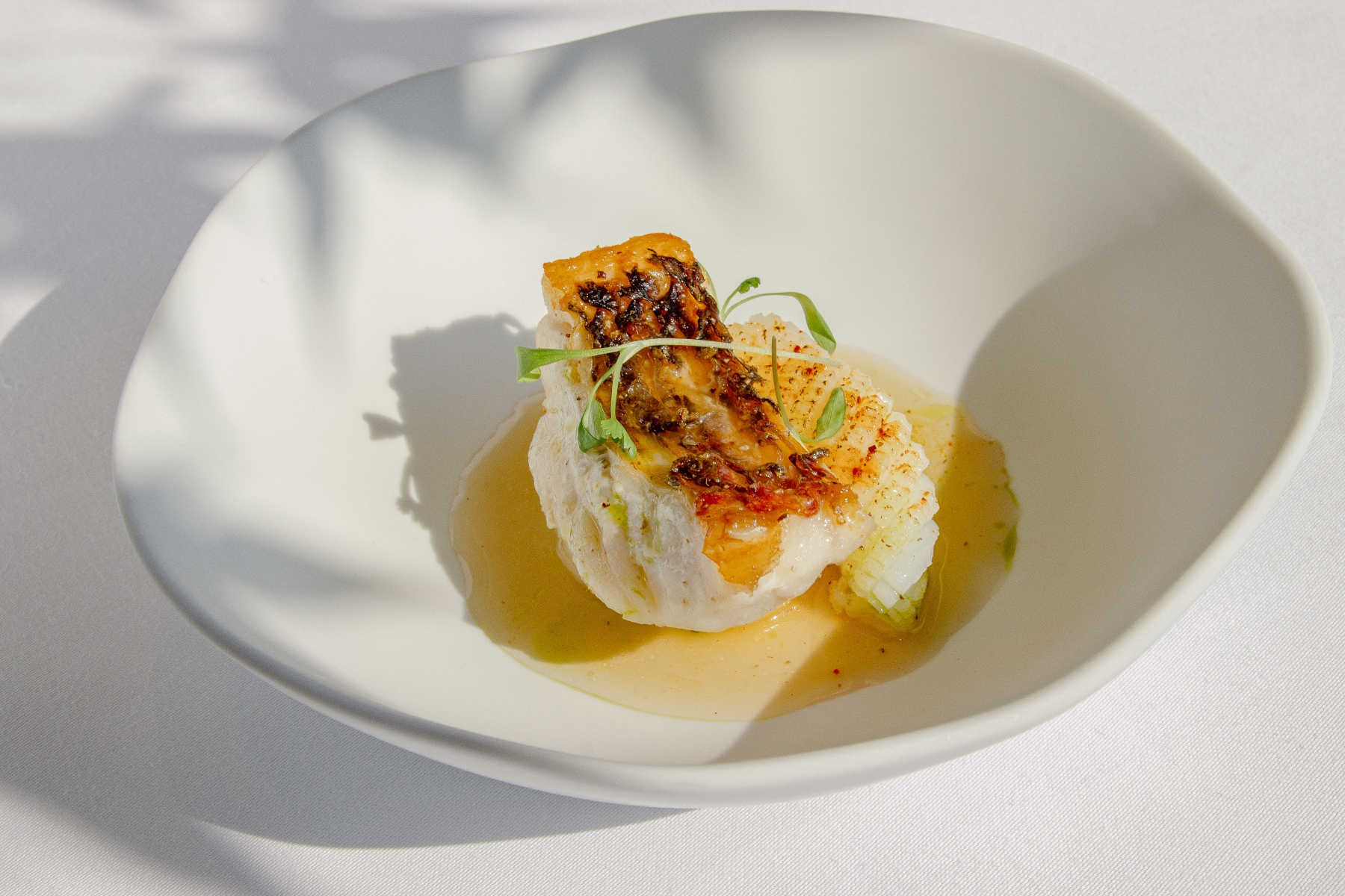 季節鮮魚佐魷魚螺肉蒜Seasonal Fresh Fish with Squid Stock
