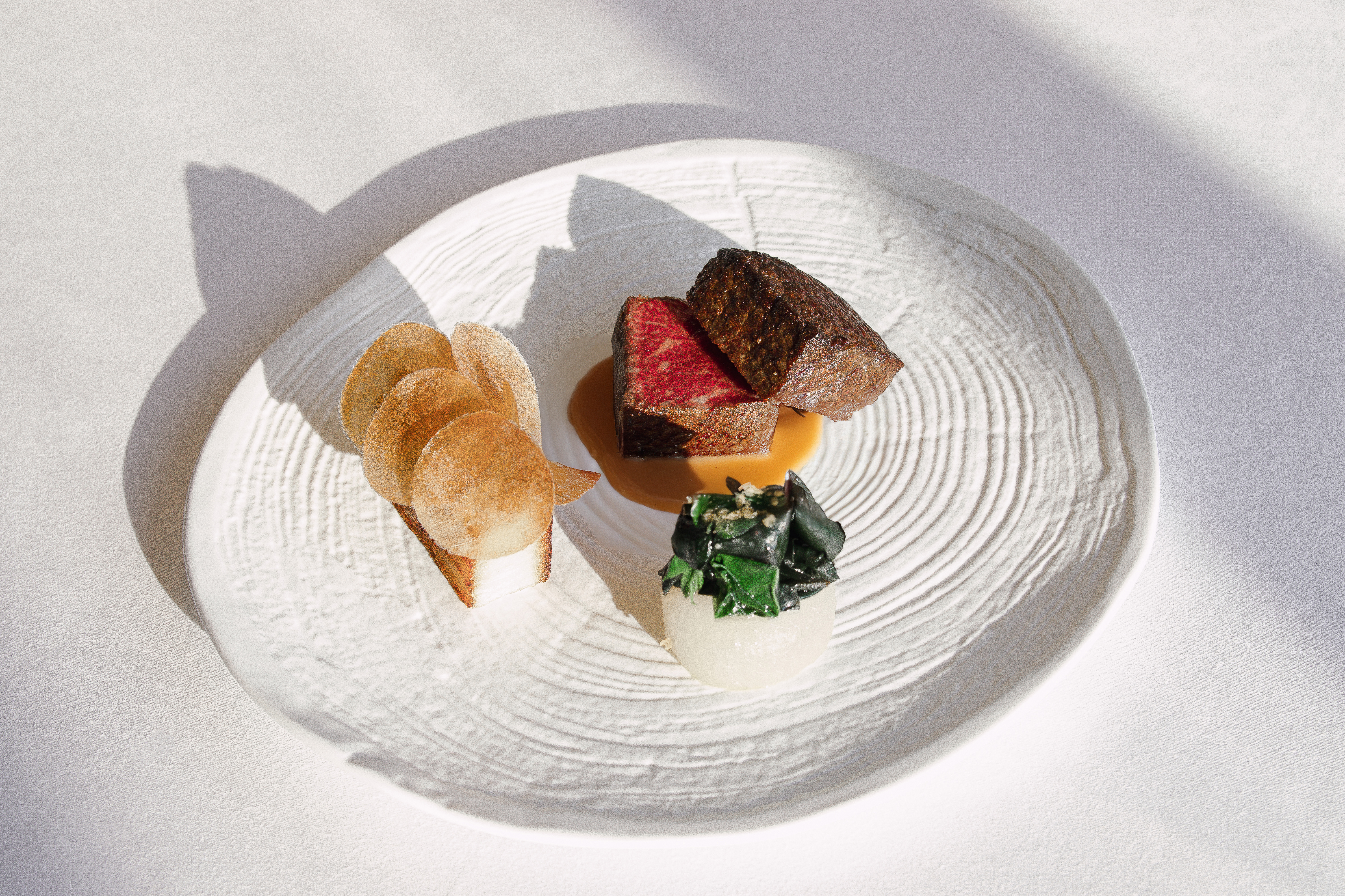 With stable Guanyin stone walls, Athenian designed chandeliers, interwoven wooden and marble floor, Chest Bon provides a simple yet elegant ambience. The ceiling-to-floor windows allow a panoramic view of the distant Danfeng Mountains, bringing nature to close proximity and enabling the serene and gentle forest landscape to smoothly enchant you.