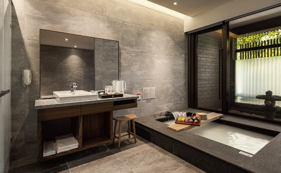 單湯池、擁有獨立的泡湯和休息區以及衛浴設備
